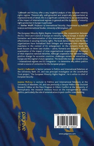 'Galbreath and McEvoy offer a very insightful analysis of the European minority rights regime. Theoretically well-grounded and empirically substantiated at impressive levels of detail, this is a significant contribution to our understanding of the impact of international regimes in general and the dynamics of minority rights protection in Europe in particular.' - Stefan Wolff, Professor of International Security, Department of Political Science and International Studies, University of Birmingham, UK