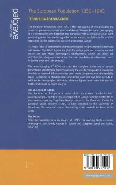 The European Population, 1850-1945 is the first volume of two on demographics. The second volume will appear as part of the Societies of Europe series in 2003 and will cover changes until the year 2000. The European Population, 1850-1945 is a comparative and historical data handbook and accompanying CD-ROM presenting series data on demographic developments, population and household structures for the countries of Western and Central Europe. All major fields of demographic change are covered: fertility, mortality, marriage, and divorce. Population figures are given for each population census by sex, civil status and age. Major demographic developments within the family are described providing a commentary on the main population structures and trends in Europe since the 19th century.