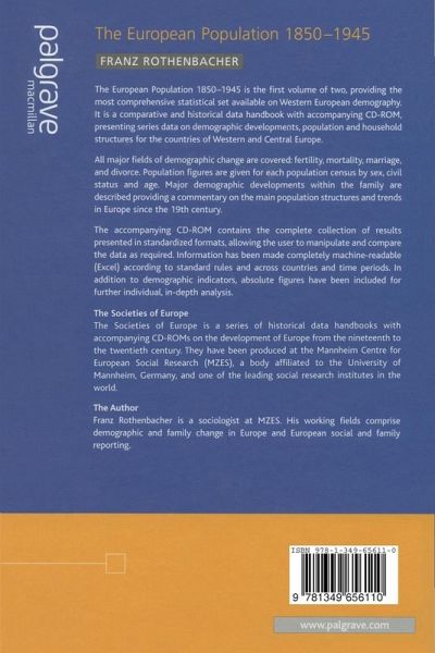 The European Population, 1850-1945 is the first volume of two on demographics. The second volume will appear as part of the Societies of Europe series in 2003 and will cover changes until the year 2000. The European Population, 1850-1945 is a comparative and historical data handbook and accompanying CD-ROM presenting series data on demographic developments, population and household structures for the countries of Western and Central Europe. All major fields of demographic change are covered: fertility, mortality, marriage, and divorce. Population figures are given for each population census by sex, civil status and age. Major demographic developments within the family are described providing a commentary on the main population structures and trends in Europe since the 19th century.