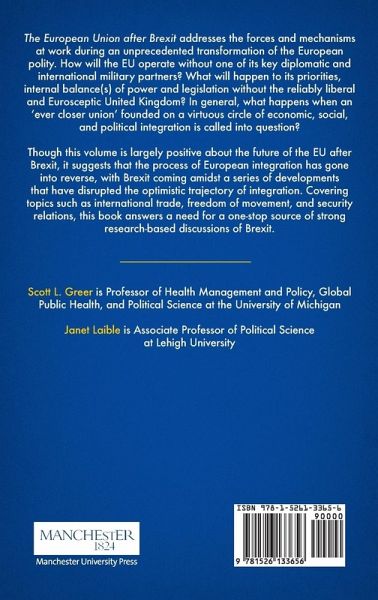 Introduction Janet Laible and Scott L. Greer 1 A cautionary tale: 'Brexit', economic citizenship, and the political perils of neoliberalism Mark I. Vail 2 Subtraction by subtraction? Brexit and its impact on the common European financial space Gregory W. Fuller 3 Brexit and the Single Market Michelle Egan 4 Social Europe after Brexit Scott L. Greer 5 European citizenship and free movement after Brexit Willem Maas 6 The EU legal order without the UK: A pity to lose the contribution? Jessica Guth 7 The East West divide: Obstacles to European integration Kristin Makszin 8 Networks after Brexit Scott L. Greer and Olga Löblová 9 European Union trade policy in the wake of the Brexit vote Holly Jarman 10 A stronger European Union? The unexpected security consequences of Brexit Federiga Bindi Conclusion The EU after Brexit: hard or soft? Vivien Schmidt
