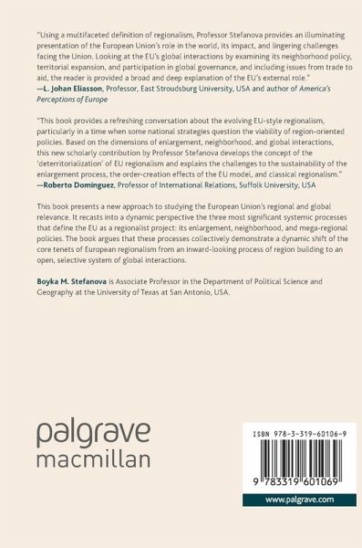 This book presents a new approach to studying the European Union's regional and global relevance. It recasts into a dynamic perspective the three most significant systemic processes that define the EU as a regionalist project: its enlargement, neighborhood, and mega-regional policies. The book argues that these processes collectively demonstrate a dynamic shift of the core tenets of European regionalism from an inward-looking process of region building to an open, selective system of global interactions.
