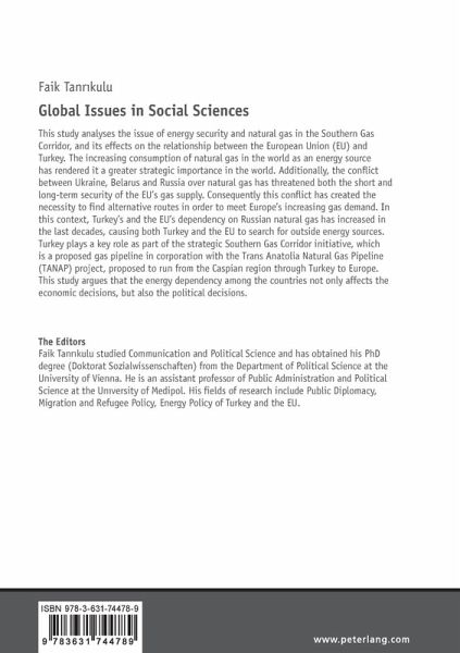 This study analyses the issue of energy security and natural gas in the Southern Gas Corridor, and its effects on the relationship between the European Union (EU) and Turkey. The increasing consumption of natural gas in the world as an energy source has rendered it a greater strategic importance in the world. Additionally, the conflict between Ukraine, Belarus and Russia over natural gas has threatened both the short and long-term security of the EU's gas supply. Consequently this conflict has created the necessity to find alternative routes in order to meet Europe's increasing gas demand. In this context, Turkey's and the EU's dependency on Russian natural gas has increased in the last decades, causing both Turkey and the EU to search for outside energy sources. Turkey plays a key role as part of the strategic Southern Gas Corridor initiative, which is a proposed gas pipeline in corporation with the Trans Anatolia Natural Gas Pipeline (TANAP ) project, proposed to run from the Caspian region through Turkey to Europe. This study argues that the energy dependency among the countries not only affects the economic decisions, but also the political decisions.