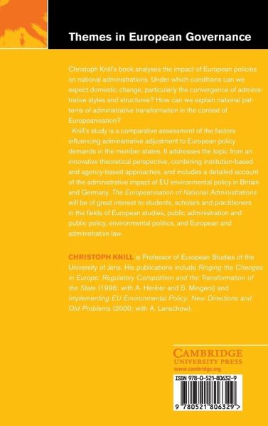 Christoph Knill's book analyses the impact of European policies on national administrations. Under which conditions can we expect domestic change, particularly the convergence of administrative styles and structures? How can we explain national patterns of administrative transformation in the context of Europeanisation? Knill's study is a comparative assessment of the factors influencing administrative adjustment to European policy demands in the member states. It addresses the topic from an innovative theoretical perspective, combining institution-based and agency-based approaches, and includes a detailed account of the administrative impact of EU environmental policy in Britain and Germany. The Europeanisation of National Administrations will be of great interest to students, scholars and practitioners in the fields of European studies, public administration and public policy, environmental politics, and European and administrative law.