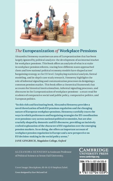 Alexandra Hennessy examines an area of Europeanization that has been largely ignored by political analysts: the development of an internal market for workplace pensions. This book offers an analysis of what is at stake in workplace pension reforms, tracing how different states approached them and how national political economy models have shaped actors' bargaining strategy at the EU level. Employing statistical analysis, formal modelling, and in-depth case study research, Hennessy highlights the role of informal signalling and communication processes in designing a common pension market. This book offers a theoretical framework that accounts for historical institutionalism, informal signalling processes and discourse in the Europeanization of workplace pensions - a must-read for students of comparative social and public policy, comparative politics and European politics.