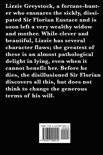 Lizzie Greystock, a fortune-hunter who ensnares the sickly, dissipated Sir Florian Eustace and is soon left a very wealthy widow and mother. While clever and beautiful, Lizzie has several character flaws; the greatest of these is an almost pathological delight in lying, even when it cannot benefit her. Before he dies, the disillusioned Sir Florian discovers all this, but does not think to change the generous terms of his will.