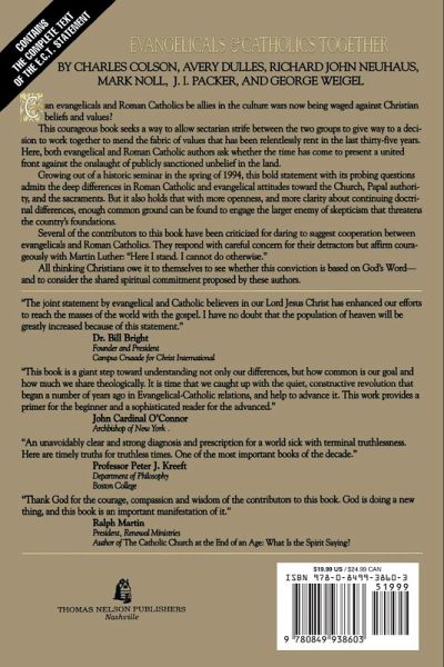 Can evangelicals and Roman Catholics be allies in the culture wars now being waged against Christian beliefs and values? This courageous book seeks a way to allow sectarian strife between the two groups to give way to a decision to work together to mend the fabric of values that has been relentlessly rent in the last thirty-five years. Here, both evangelicals and Roman Catholic authors ask whether the time has come to present a united front against the onslaught of publicly sanctioned unbelief in the land. Growing out of a historic seminar in the spring of 1994, this bold statement with its probing questions admits the deep differences in Roman Catholic and evangelical attitudes toward the Church, Papal authority, and the sacraments. But it also holds that with more openness, and more clarity about continuing doctrinal differences, enough common ground can be found to engage the larger enemy of skepticism that threatens the country's foundations. Several of the contributors to this book have been criticized for daring to suggest cooperation between evangelicals and Roman Catholics. They respond with careful concern for their detractors but affirm courageously with Martin Luther: "Here I stand. I cannot do otherwise." All thinking Christians owe it to themselves to see whether this conviction is based on God's Word - and to consider the shared spiritual commitment proposed by these authors.