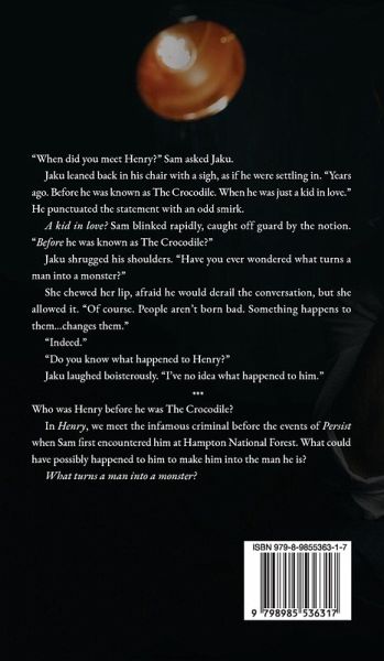 Who was Henry before he was The Crocodile? In Henry, we meet the infamous criminal before the events of Persist when Sam first encountered him at Hampton National Forest. What could have possibly happened to him to make him into the man he is? What turns a man into a monster?