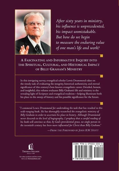 How much can one man do to influence the world for Christ? How do we begin to measure the worth of his work? In this documentary, evangelism scholar Lewis Drummond examines the Billy Graham ministry phenomenon of the last half of the 20th Century-spiritually, culturally, and historically. As a personal friend and student of the Graham family, Drummond has compiled a book that is a great resource for any student, pastor, or layperson seeking a better understanding of the Graham ministry.