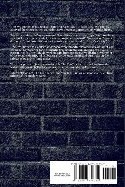 'The Eve Diaries' is a collection of poems that broadly explore the coming-of-age process. They take the form of mental and emotional explorations of a young person in today's world. The three pillars of ideas around which 'The Eve Diaries' is based are love, death and society. As such, the tone varies from humorous to darkly ironic. Interpretations of 'The Eve Diaries' are heavily reliant on allusions to the cultural subtext of the modern world.