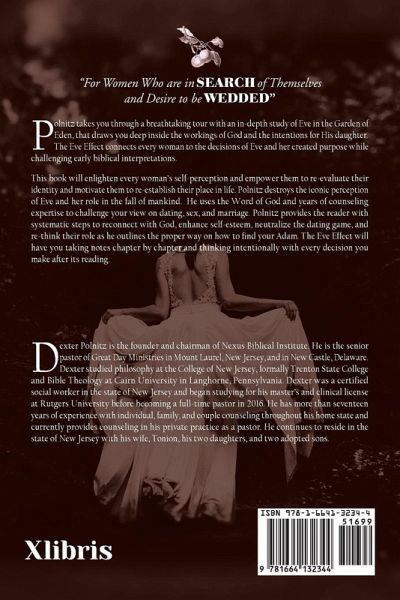 Polnitz takes you through a breathtaking tour with an in-depth study of Eve in the Garden of Eden, which draws you deep inside the workings of God and the intentions for His daughter. The Eve Effect connects every woman to the decisions of Eve and her created purpose while challenging early biblical interpretations. This book will enlighten every woman's self-perception and empower them to reevaluate their identity and motivate them to reestablish their place in life. Polnitz destroys the iconic perception of Eve and her role in the fall of mankind. He uses the Word of God and years of counseling expertise to challenge your view on dating, sex, and marriage. Polnitz provides the reader with systematic steps to reconnect with God, enhance self-esteem, neutralize the dating game, and rethink their role as he outlines the proper way on how to find your Adam. The Eve Effect will have you taking notes chapter by chapter and thinking intentionally with every decision you make after its reading.