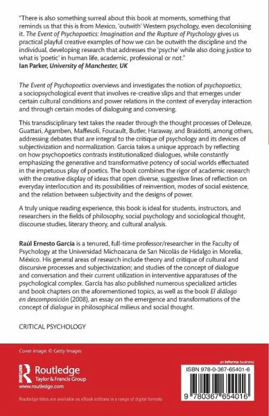 The Event of Psychopoetics overviews and investigates the notion of psychopoetics, a sociopsychological event that involves re-creative slips and that emerges under certain cultural conditions and power relations in the context of everyday interaction and through certain modes of dialoguing and conversing. This transdisciplinary text takes the reader through the thought processes of Deleuze, Guattari, Agamben, Maffesoli, Foucault, Butler, Haraway, and Braidotti, among others, addressing debates that are integral to the critique of psychology and its devices of subjectivization and normalization. Garcia takes a unique approach by reflecting on how psychopoetics contrasts institutionalized dialogues, while constantly emphasizing the generative and transformative potency of social worlds effectuated in the impetuous play of poetics. The book combines the rigor of academic research with the creative display of ideas that open diverse, suggestive lines of reflection on everyday interlocution and its possibilities of reinvention, modes of social existence, and the relation between subjectivity and the designs of power. A truly unique reading experience, this book is ideal for students, instructors, and researchers in the fields of philosophy, social psychology and sociological thought, discourse studies, literary theory, and cultural analysis.