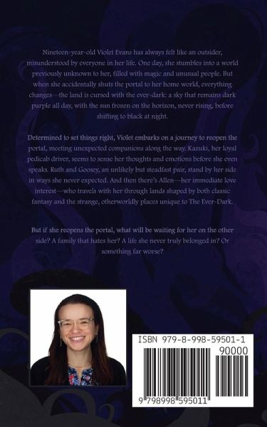 Violet Evans has always felt like an outsider. But when she stumbles into the magical realm, she finally starts to feel like she has a place in life. Until she accidentally shuts the portal home, cursing the world with the ever-dark: a sky that stays dark purple all day, with the sun frozen on the horizon, never rising, before shifting to black at night. Determined to right her wrongs, Violet sets out to reopen the portal. But if she reopens it, what will be waiting for her on the other side? A family that hates her? A life she never truly belonged in? Or something far worse?