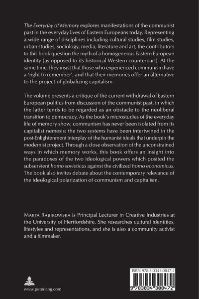 The volume presents a critique of the current withdrawal of Eastern European politics from discussion of the communist past, in which the latter tends to be regarded as an obstacle to the neoliberal transition to democracy. As the book's microstudies of the everyday life of memory show, communism has never been isolated from its capitalist nemesis: the two systems have been intertwined in the post-Enlightenment interplay of the humanist ideals that underpin the modernist project. Through a close observation of the unconstrained ways in which memory works, this book offers an insight into the paradoxes of the two ideological powers which posited the subservient homo sovieticus against the civilized homo economicus. The book also invites debate about the contemporary relevance of the ideological polarization of communism and capitalism.