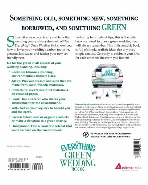 Increasingly, brides and grooms are spending their wedding dollars on environmentally friendly products and services. From the dress to the dinner, there are more green options available today than ever before. This book will teach the happy couple just how easy and affordable it is to: choose a stunning environmentally friendly location; create beautiful invitations printed on recycled paper; find the perfect eco-fashion; enjoy a gourmet organic caterer; find the right romantic honeymoon retreat, and more! This fun, informative guide provides all the steps to a beautiful wedding - without leaving a footprint!