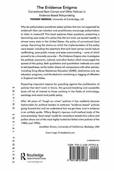 Why do policymakers sometimes adopt policies that are not supported by evidence? How can scholars and practitioners encourage policymakers to listen to research? This book explores these questions, presenting a fascinating case study of a policy that did not work, yet spread rapidly to almost every state in the United States: the policy of correctional boot camps. Examining the claims on which the implementation of the policy were based, including the assertions that such boot camps would reduce reoffending, save public money and ease overcrowding - none of which proved to be universally accurate - The Evidence Enigma also investigates the political, economic, cultural, and other factors which encouraged the spread of this policy. Both qualitative and quantitative methods are used to test hypotheses, as the author draws rich comparisons with other policies, including Drug Abuse Resistance Education (DARE), abstinence-only sex education programs, and the electronic monitoring or tagging of offenders in England and Wales. Presenting important lessons for guarding against the proliferation of policies that don't work in future, this ground-breaking and accessible book will be of interest to those working in the fields of criminology, sociology and social and public policy.