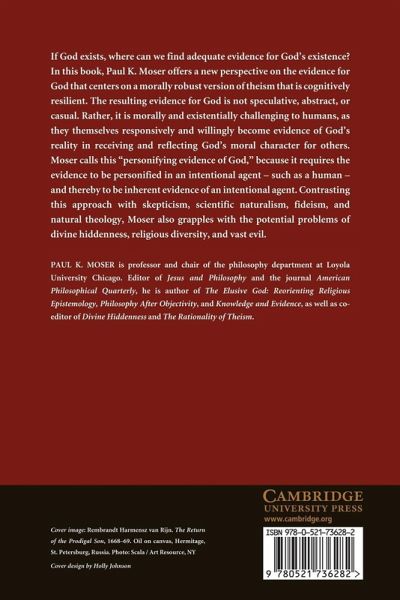 If God exists, where can we find adequate evidence for God's existence? In this book, Paul Moser offers a perspective on the evidence for God that centers on a morally robust version of theism that is cognitively resilient. The resulting evidence for God is not speculative, abstract, or casual. Rather, it is morally and existentially challenging to humans, as they themselves responsively and willingly become evidence of God's reality in receiving and reflecting God's moral character for others. Moser calls this 'personifying evidence of God,' because it requires the evidence to be personified in an intentional agent - such as a human - and thereby to be inherent evidence of an intentional agent. Contrasting this approach with skepticism, scientific naturalism, fideism, and natural theology, Moser also grapples with the potential problems of divine hiddenness, religious diversity, and vast evil.