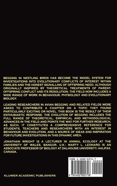 Begging by nestling birds has become the model system for investigating evolutionary conflicts of interest within families and their theoretical resolution provided by honest signals of offspring need. In response to the recent explosions of scientific papers on the revolution of begging; we have brought together twenty-four original contributions from major researchers in all areas of this dynamic field.