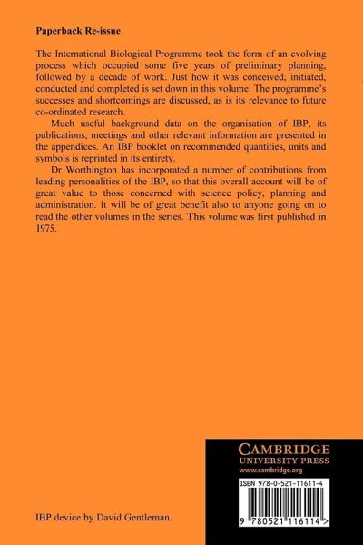 The International Biological Programme took the form of an evolving process which occupied some five years of preliminary planning, followed by a decade of work. Just how it was conceived, initiated, conducted and completed is set down in this volume. The programme's successes and shortcomings are discussed, as it its relevance to future coordinated research. Much useful background data on the organisation of IBP, its publications, meetings and other relevant information are presented in the appendices. An IBP booklet on recommended quantities, units and symbols is reprinted in its entirety. Dr Worthington has incorporated a number of contributions from leading personalities of the IBP, so that this overall account, first published in 1975, will be of great value to those concerned with science policy, planning and administration. It will be of great benefit also to anyone going on to read the other volumes in the series.