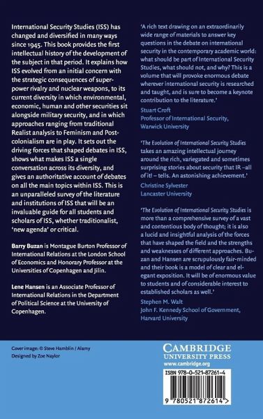 International Security Studies (ISS) has changed and diversified in many ways since 1945. This book provides the first intellectual history of the development of the subject in that period. It explains how ISS evolved from an initial concern with the strategic consequences of superpower rivalry and nuclear weapons, to its current diversity in which environmental, economic, human and other securities sit alongside military security, and in which approaches ranging from traditional Realist analysis to Feminism and Post-colonialism are in play. It sets out the driving forces that shaped debates in ISS, shows what makes ISS a single conversation across its diversity, and gives an authoritative account of debates on all the main topics within ISS. This is an unparalleled survey of the literature and institutions of ISS that will be an invaluable guide for all students and scholars of ISS, whether traditionalist, 'new agenda' or critical.
