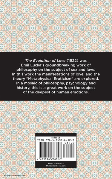 "Love is a theme which at all times and in all countries has been of primary interest to men and women, and therefore this book, which throws an illuminating ray of light in many a dark place still wrapped in mystery and silence, not only impresses the psychologist, but also fascinates the general reader with its wealth of interesting detail and charm of expression."-Ellie Schleussner In The Evolution of Love (1922) the Austrian Poet-Philosopher Emil Lucka reveals his conception of the development of love and sex. In his revolutionary presentation of ideas, the author blends history, psychology, and philosophy to speculate that love is not a fundamental predisposition, but evolved through historical changes. There are three distinct stages of the development of love that Lucka explores in this important work; Metaphysical Eroticism, the first, is the exploration of emotional climaxes and the sexual instinct. Moving from prehistoric man through the ideals of Greek love, and to the spread of Christianity, he lays his foundation through the lens of history. The second stage is Love, which he again demonstrates its development through history, specifically the birth of European civilization. The third stage is the unity of sexual impulse and love, the evolution of the spiritual love of man for woman based on personality. Finally, Lucka delves into erotic aberrations, exploring perversities of sex and love through the progress of history. In Lucka's conclusion, he looks at the realm of the spirit in the context of Ernst Heackel's biogenetic law. With an eye-catching new cover, and professionally typeset manuscript, this edition of The Evolution of Love is both modern and readable. Since our inception in 2020, Mint Editions has kept sustainability and innovation at the forefront of our mission. Each and every Mint Edition title gets a fresh, professionally typeset manuscript and a dazzling new cover, all while maintaining the integrity of the original book. With thousands of titles in our collection, we aim to spotlight diverse public domain works to help them find modern audiences. Mint Editions celebrates a breadth of literary works, curated from both canonical and overlooked classics from writers around the globe.
