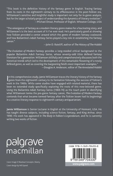 "It's a masterful study that deservedly won the 2016 Mythopoeic Scholarship Award in Myth and Fantasy Studies. ... The Evolution of Modern Fantasy may be defined as a history of that territory up to the time that the dotted line was drawn. ... Williamson has offered more than enough both of thoughtful consideration of the history of fantasy and of identification of books beyond Carter to read." (David Bratman, Mythlore, Vol. 35 (1), 2016)