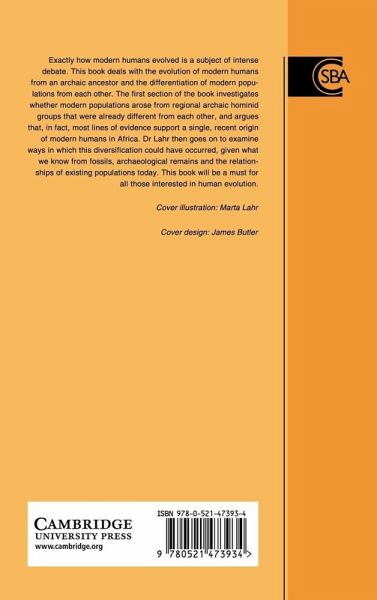 Exactly how modern humans evolved is a subject of intense debate. This book deals with the evolution of modern humans from an archaic ancestor and the differentiation of modern populations from each other. The first section of the book investigates whether modern populations arose from regional archaic hominid groups that were already different from each other, and argues that, in fact, most lines of evidence support a single, recent origin of modern humans in Africa. Dr Lahr then goes on to examine ways in which this diversification could have occurred, given what we know from fossils, archaeological remains and the relationships of existing populations today. This book will be a must for all those interested in human evolution.
