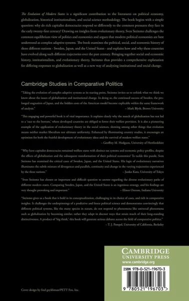 The Evolution of Modern States, first published in 2010, is a significant contribution to the literatures on political economy, globalization, historical institutionalism, and social science methodology. The book begins with a simple question: why do rich capitalist democracies respond so differently to the common pressures they face in the early twenty-first century? Drawing on insights from evolutionary theory, Sven Steinmo challenges the common equilibrium view of politics and economics and argues that modern political economies are best understood as complex adaptive systems. The book examines the political, social, and economic history of three different nations - Sweden, Japan, and the United States - and explains how and why these countries have evolved along such different trajectories over the past century. Bringing together social and economic history, institutionalism, and evolutionary theory, Steinmo thus provides a comprehensive explanation for differing responses to globalization as well as a new way of analyzing institutional and social change.
