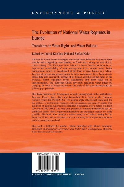This book examines the development of water management in the Netherlands, Belgium, France, Spain, Italy and Switzerland. It is based on the European research project EUWARENESS. The authors apply a theoretical framework for the analysis of institutional regimes, water governance and property rights. The evolution of national water resource regimes is described over a period of almost 200 years (1800-2000). The long-term perspective enables the reader to see the conditions under which regime transformation and paradigm change are made possible. The book also includes a critical analysis of policy making by the European Union, and a comparative review and analysis of regime development in the six countries involved.
