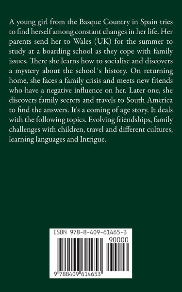 A young girl from the Basque Country in Spain tries to find herself among constant changes in her life. Her parents send her to Wales (UK) for the summer to study at a boarding school as they cope with family issues. There she learns how to socialise and discovers a mystery about the school's history. On returning home, she faces a family crisis and meets new friends who have a negative influence on her. Later one, she discovers family secrets and travels to South America to find the answers. It's a coming of age story. It deals with the following topics. Evolving friendships, family challenges with children, travel and different cultures, learning languages and Intrigue.