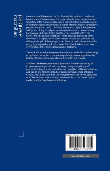 The book describes the birth and growth of financial institutions and stock exchanges in Scandinavia and Finland from 1656 to 2010, including their banking crises and the history of banking regulation. It argues that quantitative regulations cannot, in the long run, produce the desired results and bear the seeds of future financial crises.