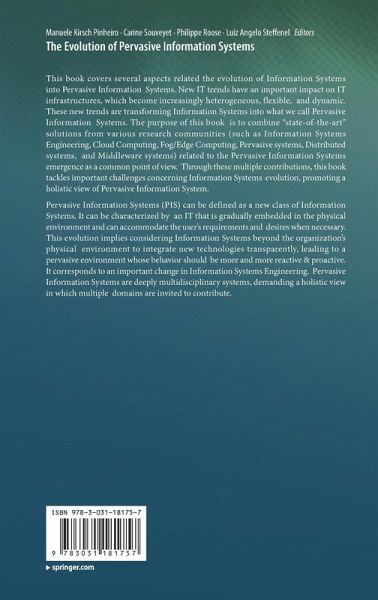 This book covers several aspects related the evolution of Information Systems into Pervasive Information Systems. New IT trends have an important impact on IT infrastructures, which become increasingly heterogeneous, flexible, and dynamic. These new trends are transforming Information Systems into what we call Pervasive Information Systems. The purpose of this book is to combine "state-of-the-art" solutions from various research communities (such as Information Systems Engineering, Cloud Computing, Fog/Edge Computing, Pervasive systems, Distributed systems, and Middleware systems) related to the Pervasive Information Systems emergence as a common point of view. Through these multiple contributions, this book tackles important challenges concerning Information Systems evolution, promoting a holistic view of Pervasive Information System.