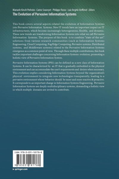 This book covers several aspects related the evolution of Information Systems into Pervasive Information Systems. New IT trends have an important impact on IT infrastructures, which become increasingly heterogeneous, flexible, and dynamic. These new trends are transforming Information Systems into what we call Pervasive Information Systems. The purpose of this book is to combine "state-of-the-art" solutions from various research communities (such as Information Systems Engineering, Cloud Computing, Fog/Edge Computing, Pervasive systems, Distributed systems, and Middleware systems) related to the Pervasive Information Systems emergence as a common point of view. Through these multiple contributions, this book tackles important challenges concerning Information Systems evolution, promoting a holistic view of Pervasive Information System.