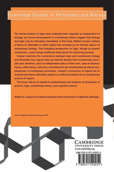 The formal systems of logic have ordinarily been regarded as independent of biology, but recent developments in evolutionary theory suggest that biology and logic may be intimately interrelated. In this book, William S. Cooper outlines a theory of rationality in which logical law emerges as an intrinsic aspect of evolutionary biology. He examines the connections between logic and evolutionary biology and illustrates how logical rules are derived directly from evolutionary principles, and therefore, have no independent status of their own. This biological perspective on logic, though at present unorthodox, could change traditional ideas about the reasoning process.