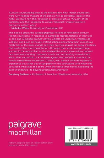 'Sullivan's outstanding book is the first to show how French courtesans were fully-fledged masters of the pen as well as proverbial ladies of the night. We learn how their rewriting of classics such as The Lady of the Camellias and their response to a male "backlash" inspire Colette in previously unseen ways.' - Nicholas White, University of Cambridge, UK