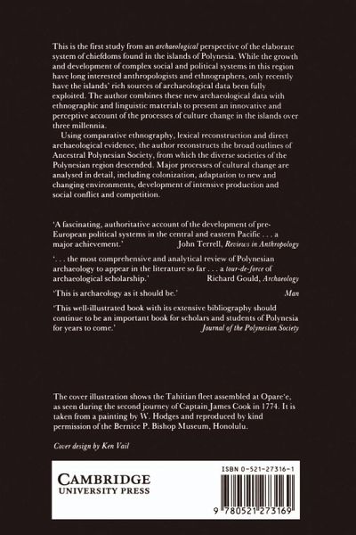 This is the first study from an archaeological perspective of the elaborate system of chiefdoms found in the islands of Polynesia. While the growth and development of complex social and political systems in this region have long interested anthropologists and ethnographers, only recently have the islands' rich sources of archaeological data been fully exploited. The author combines these new archaeological data with ethnographic and linguistic materials to present an innovative and perceptive account of the processes of culture change in the islands over three millennia. Using comparative ethnography, lexical reconstruction and direct archaeological evidence, the author reconstructs the broad outlines of Ancestral Polynesian Society, from which the diverse societies of the Polynesian region descended. Major proceeds of cultural change are analysed in detail, including colonization, adaptation to new and changing environments, development of intensive production and social conflict and competition.