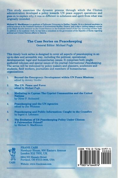 This fascinating study examines the dynamic process through which the Clinton administration developed a policy towards UN peace support operations. The author addresses the fundamental question: what factors influenced the shift in US policy towards the United Nations and its peace support operations and which factors were clearly dominant? Based on primary sources and interviews with political personalities and officials, the author examines four main factors which shaped the development of policy: the Executive branch, the bureaucracies (the State Department and Department of Defense), Congress and public opinion. These provide the basis for the core chapters of the book, which also contains a chapter on methodology and a chapter of summary analysis.