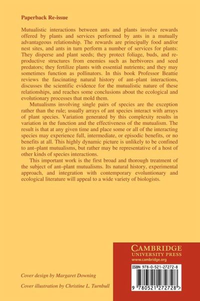 Mutualistic interactions between ants and plants involve rewards offered by plants and services performed by ants in a mutually advantageous relationship. The rewards are principally food and/or nest sites, and ants in turn perform a number of services for plants: they disperse and plant seeds; they protect foliage, buds, and reproductive structures from enemies such as herbivores and seed predators; they fertilize plants with essential nutrients; and they may sometimes function as pollinators. In this book, initially published in 1985, Professor Beattie reviews the fascinating natural history of ant-plant interactions, discusses the scientific evidence for the mutualistic nature of these relationships, and reaches some conclusions about the ecological and evolutionary processes that mold them. This important work explores the natural history, experimental approach, and integration with contemporary evolutionary and ecological literature of the time will appeal to a wide variety of biologists.