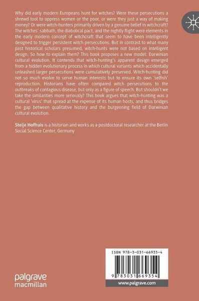 Why did early modern Europeans hunt for witches? Were these persecutions a shrewd tool to oppress women or the poor, or were they just a way of making money? Or were witch-hunters primarily driven by a genuine belief in witchcraft? The witches' sabbath, the diabolical pact, and the nightly flight were elements in the early modern concept of witchcraft that seem to have been intelligently designed to trigger persistent witch persecutions. But in contrast to what many past historical scholars presumed, witch-hunts were not based on intelligent design. So how to explain them? This book proposes a new model: Darwinian cultural evolution. It contends that witch-hunting's apparent design emerged from a hidden evolutionary process in which cultural variants which accidentally unleashed larger persecutions were cumulatively preserved. Witch-hunting did not so much evolve to serve human interests but to ensure its own 'selfish' reproduction. Historians have often compared witch persecutions to the outbreaks of contagious disease, but only as a figure of speech. But shouldn't we take the similarities more seriously? This book argues that witch-hunting was a cultural 'virus' that spread at the expense of its human hosts, and thus bridges the gap between qualitative history and the burgeoning field of Darwinian cultural evolution.