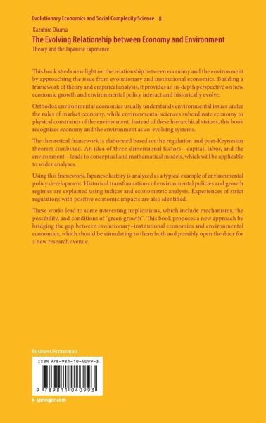 This book sheds new light on the relationship between economy and the environment by approaching the issue from evolutionary and institutional economics. Building a framework of theory and empirical analysis, it provides an in-depth perspective on how economic growth and environmental policy interact and historically evolve.