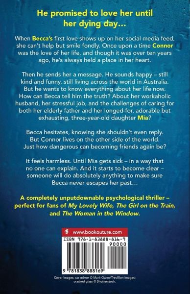 He promised to love her until her dying day… When Becca's first love shows up on her social media feed, she can't help but smile fondly. Once upon a time Connor was the love of her life, and though it was over ten years ago, he's always held a place in her heart. Then he sends her a message. He sounds happy - still kind and funny, still living across the world in Australia. But he wants to know everything about her life now. How can Becca tell him the truth? About her workaholic husband, her stressful job, and the challenges of caring for her elderly father and her longed-for, adorable but exhausting three-year-old daughter Mia? Becca hesitates, knowing she shouldn't even reply. But Connor lives on the other side of the world. Just how dangerous can becoming friends again be? It feels harmless. Until Mia gets sick - in a way that no one can explain. And it starts to become clear - someone will do absolutely anything to make sure Becca never escapes her past… A completely unputdownable psychological thriller - perfect for fans of My Lovely Wife, The Girl on the Train, and The Woman at the Window. Readers are loving The Ex-Boyfriend: 'Amazing… This book had me gripped from the very first page and I could not put it down. There were so many twists and turns I became dizzy! Just when I thought I had it figured out my theory was shot down… Read it, I guarantee you won't be disappointed - just make sure your calendar is clear as you won't be able to put it down!' Goodreads Reviewer ¿¿¿¿¿ 'I knew this book was going to be fantastic!! Had my head reeling, kept changing my mind on who it was… I can't say enough good things about this one. Put it on your to-read list right now… Unputdownable.' Goodreads Reviewer ¿¿¿¿¿ 'A perfect psychological thriller in every way… the drama, twists and turns fly thick and fast… Once you start you won't be able to stop… Fast paced, exciting, at times dark, very dark and at all times thrilling.' Goodreads Reviewer ¿¿¿¿¿ 'I blooming loved it… I read this gripping read in just two sittings, I was totally drawn to the characters and this had you guessing all the way though which kept me page turning until almost midnight. WOW. A must read… Just brilliant.' Goodreads Reviewer ¿¿¿¿¿ 'It's 1am and I've just finished this gripping rollercoaster of a book. When they say "unputdownable" it truly is! Wow! The emotions, the twists and turns, this book is guaranteed to keep you guessing right to the end… I loved it, loved the characters, loved the plot, loved the writing style - everything… Absolutely fantastic.' Goodreads Reviewer ¿¿¿¿¿ 'Blew my mind! What a twisted, deceptive web the author wove. My thoughts were constantly changing about what I thought was going on… I absolutely LOVE books like this. It kept me guessing until the very end!' Goodreads Reviewer ¿¿¿¿¿