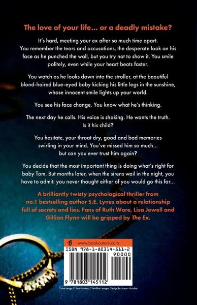 The love of your life... or a deadly mistake? It's hard, meeting your ex after so much time apart. You remember the tears and accusations, the desperate look on his face as he punched the wall, but you try not to show it. You smile politely, even while your heart beats faster. You watch as he looks down into the stroller, at the beautiful blond-haired blue-eyed baby kicking his little legs in the sunshine, whose innocent smile lights up your world. You see his face change. You know what he's thinking. The next day he calls. His voice is shaking. He wants the truth. Is it his child? You hesitate, your throat dry, good and bad memories swirling in your mind. You've missed him so much... but can you ever trust him again? You decide that the most important thing is doing what's right for baby Tom. But months later, when the sirens wail in the night, you have to admit: you never thought either of you would go this far... A brilliantly twisty psychological thriller from no.1 bestselling author S.E. Lynes about a relationship full of secrets and lies. Fans of Ruth Ware, Lisa Jewell and Gillian Flynn will be gripped by The Ex. See what everyone's saying about The Ex: 'Wow!!!!! Loved!!!!! Speechless!!!!!... fabulous... so many twists and turns that my head was spinning throughout... that ending was a complete shock... I raced through each chapter like it was my last. I just had to find out what happened.' Blue Moon Blogger, ¿¿¿¿¿ 'Wow! Susie Lynes hits it out of the park again! I loved this new thriller so much. Had me hooked from page one and didn't let go... Expertly done! Highly recommend.' NetGalley reviewer, ¿¿¿¿¿ 'A nail-biting read!!!... grabs you from the first chapter and doesn't let you go until the end!... Riveting and extremely twisted, there was no way I could put this one down and it resulted in an all-night read and a book hangover!' @rubie_reads, ¿¿¿¿¿ 'Yet again I was lured into a sense of false security only to be blown away by the final pages!... Wickedly twisted wonderful read!' Goodreads reviewer, ¿¿¿¿¿ 'One helluva read... intense and gripping... you really don't have a clue what's going on or who to believe until BAM, you get punched in the face with the reality of it all and just have to gasp because it's so brilliant.' Goodreads reviewer, ¿¿¿¿¿ 'Brilliant page-turner, had me hooked to the end, already recommending it to friends.' Goodreads reviewer, ¿¿¿¿¿ 'Totally floored me with its brilliance... There is no way you could predict the final and best shock of them all... unputdownable, a page turner with a total corker of plot, and totally unmissable.' NetGalley reviewer, ¿¿¿¿¿