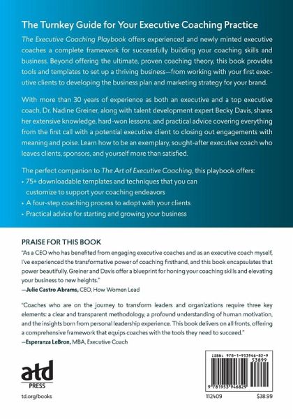 This turnkey guide helps you build a successful executive coaching framework and practice. The Executive Coaching Playbook offers experienced and newly minted executive coaches a complete framework for building your coaching skills and business with proven results. Beyond offering the ultimate, proven coaching theory, this book provides the tools and templates you need to set up a thriving business-from working with your first executive clients to developing the business plan and marketing strategy for your brand. With more than 30 years of experience as both an executive and a top executive coach, Dr. Nadine Greiner, along with talent development expert Becky Davis, shares her extensive knowledge, hard-won lessons, and practical advice covering everything from the first chemistry call with a potential executive client to closing out engagements with meaning and poise. In this book, you will learn how to be the exemplary, sought-after executive coach that leaves clients, sponsors, and yourself more than satisfied. The perfect companion to Dr. Nadine's The Art of Executive Coaching, the playbook offers: 75+ downloadable templates and techniques (including email templates, worksheets, forms, and agendas) to support and to customize for your coaching endeavors A four-step coaching process to adopt with your clients Practical advice for starting and growing your business