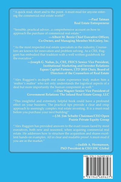 Is your company expanding, or has it outgrown its current space? Are you wondering how hard it could possibly be to become the point person for finding and purchasing a new building for your company? You have come to the right place! Read on before you make a move. You are probably great at running your business. But buying commercial real estate has its own language, timetable, challenges and pitfalls. It can be mystifying and daunting, but there is help and hope. Alex Ruggieri and Noah Ruggieri, the authors of The Executive's Guide for Buying Commercial Property, have over 50 years of combined experience in all aspects of buying and selling multimillion dollar buildings as well as experience in commercial building projects. They have seen many of the challenges that can come up in commercial real estate transactions. They want to help you avoid the typical pitfalls that executives can run into when they attempt the complex process of purchasing commercial property for the first time. In this powerful guide you will learn about: • The benefits of owning versus leasing or renting the property • Working with real estate professionals • Short term versus long term thinking • Planning and zoning boards and city ordinances and other political pitfalls • Financing basics • Building the right commercial real estate team • Some things to keep in mind after the purchase. It is possible to make good, data based decisions that will benefit your company now and for years in the future by heeding the advice of these experts. With this book as your guide, you can avoid the pitfalls and move forward with confidence.