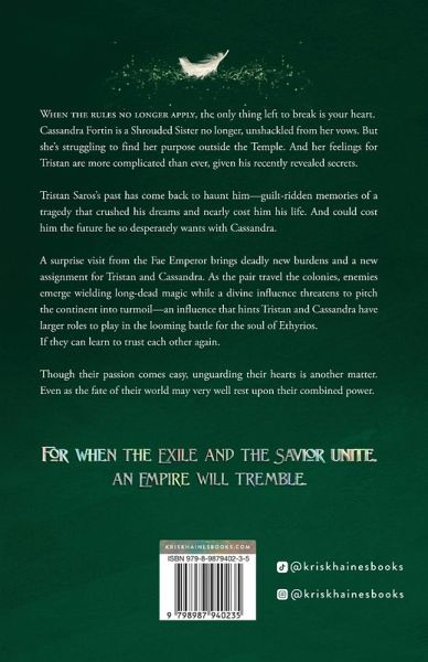 When the rules no longer apply, the only thing left to break is your heart. Cassandra Fortin is a Shrouded Sister no longer, unshackled from her vows. But she's struggling to find her purpose outside the Temple. And her feelings for Tristan are more complicated than ever, given his recently revealed secrets. Tristan Saros's past has come back to haunt him-guilt-ridden memories of a tragedy that crushed his dreams and nearly cost him his life. And could cost him the future he so desperately wants with Cassandra. A surprise visit from the Fae Emperor brings deadly new burdens and a new assignment for Tristan and Cassandra. As the pair travel the colonies, enemies emerge wielding long-dead magic while a divine influence threatens to pitch the continent into turmoil--an influence that hints Tristan and Cassandra have larger roles to play in the looming battle for the soul of Ethyrios. If they can learn to trust each other again. Though their passion comes easy, unguarding their hearts is another matter. Even as the fate of their world may very well rest upon their combined power. For when the Exile and the Savior unite, an Empire will tremble. The Exile and the Savior is the heart-pounding second installment in The Memory Puller series, new adult fantasy full of epic adventure, thrilling twists, swoony romance, and witty banter. And hot Fae males with wings, of course. Perfect for fans of Sarah J. Maas, Jennifer L. Armentrout, Raven Kennedy, and Carissa Broadbent. This book is intended for readers 18+ and contains mature themes. Please check trigger warnings in the beginning of the book or on the author's website.