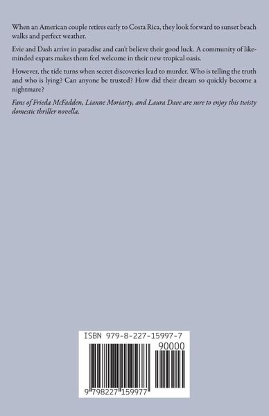 When an American couple retires early to Costa Rica, they look forward to sunset beach walks and perfect weather. Evie and Dash arrive in paradise and can't believe their good luck. A community of like-minded expats makes them feel welcome in their new tropical oasis. However, the tide turns when secret discoveries lead to murder. Who is telling the truth and who is lying? Can anyone be trusted? How did their dream so quickly become a nightmare? Fans of Frieda McFadden, Lianne Moriarty, and Laura Dave are sure to enjoy this twisty domestic thriller novella.