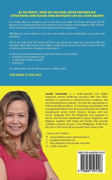 AS AN EXPAT, HOW DO YOU DEAL WITH UNFAMILIAR SITUATIONS AND PLACES AND NAVIGATE LIFE ALL OVER AGAIN? For Jovelle, this is a constant cycle in her life as an expat. This book will reveal the life lessons of an expat who lived and worked in five countries and traveled in fifty of them. Those life lessons came from extraordinary but true experiences. Whether you are an expat or not, your core values may be challenged, or you may feel alienated. This is the only book that starts with the story about the Nude Guy and ends with The Foreplay! Filled with humor and insights, Jovelle lets us know how it feels to be a fish out of water and how she managed to overcome it. In this book, you will become the real best version of yourself by: ¿ Prioritizing what matters most ¿ Continuing to define yourself ¿ Letting go You will benefit from the life lessons of a million miler. THIS BOOK IS FOR YOU!