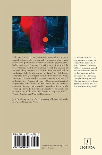 Federico Garcia Lorca's (1898-1936) powerful and experimental colour-work is a critically undernourished aspect of his craft, particularly in terms of colour's psychological, bodily and material agency. Breaking away from scholarly preoccupations with Lorca's sexuality, with the division of his work along temporal and stylistic lines, and with colour symbolism, Jade Boyd's readings of Lorca's ten full-length completed plays (1920-1936) examine how his colour-work forms part of a sustained experimentation with his visceral and intersensory 'theatre of poetry'. Drawing on theoretical engagement with colour, in the visual arts, in material culture, in literary criticism and in cultural studies, her study opens up mutually beneficial perspectives on colour for readers across Colour Studies, Modern Language Studies, Theatre Studies, and Medical Humanities. Jade Boyd is a graduate of the University of Bristol and works at Oxford University Press.