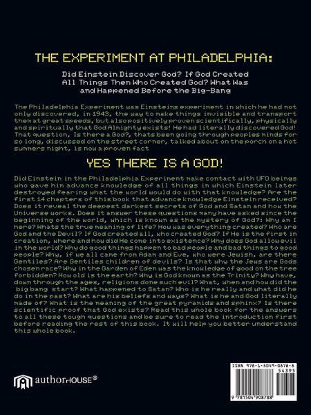 The Philadelphia Experiment was Einstein's experiment in which he had not only discovered, in 1943, the way to make things invisible and transport them at great speeds, but also positively proven scientifically, physically and spiritually that God Almighty exists! He had literally discovered God! That question, Is there a God?, that's been going through people's minds for so long, discussed on the street corner, talked about on the porch on a hot summer's night, is now a proven fact...