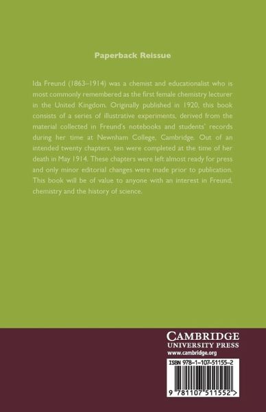 Ida Freund (1863-1914) was a chemist and educationalist who is most commonly remembered as the first female chemistry lecturer in the United Kingdom. Originally published in 1920, this book consists of a series of illustrative experiments, derived from the material collected in Freund's notebooks and students' records during her time at Newnham College, Cambridge. Out of an intended twenty chapters, ten were completed at the time of her death in May 1914. These chapters were left almost ready for press and only minor editorial changes were made prior to publication. This book will be of value to anyone with an interest in Freund, chemistry and the history of science.