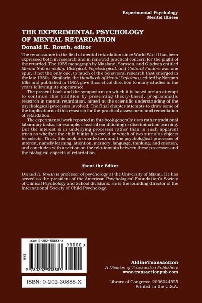 The renaissance in the field of mental retardation since World War II has been expressed both in research and in renewed practical concern for the plight of the retarded. The 1958 monograph by Masland, Sarason, and Gladwin entitled Mental Subnormality: Biological, Psychological, and Cultural Factors was one spur, if not the only one, to much of the behavioral research which emerged in the late 1950's. Similarly, the Handbook of Mental Deficiency, edited by Norman Ellis and published in 1963, gave theoretical direction to many studies in the years following its appearance. The present book and the symposium on which it is based are an attempt to continue this tradition by presenting theory-based, programmatic research in mental retardation, aimed at the scientific understanding of the psychological processes involved. The final chapter attempts to draw some of the implications of this research for the practical assessment and remediation of retardation. The experimental work reported in this book generally uses rather traditional laboratory tasks, for example, classical conditioning or discrimination learning. But the interest is in underlying processes rather than in such apparent trivia as whether the child blinks his eyelid or which of two stimulus objects he selects. Thus, this book is oriented around the psychological processes of interest, namely learning, attention, memory, language, thinking, and emotion, and concludes with a section on the relationship between these processes and the biological aspects of retardation.